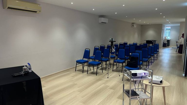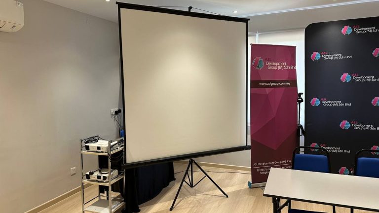 Ruang latihan lengkap dengan kemudahan audio visual—PA system, projektor, skrin putih dan mikrofon membantu memastikan setiap sesi berjalan lancar dan menarik.